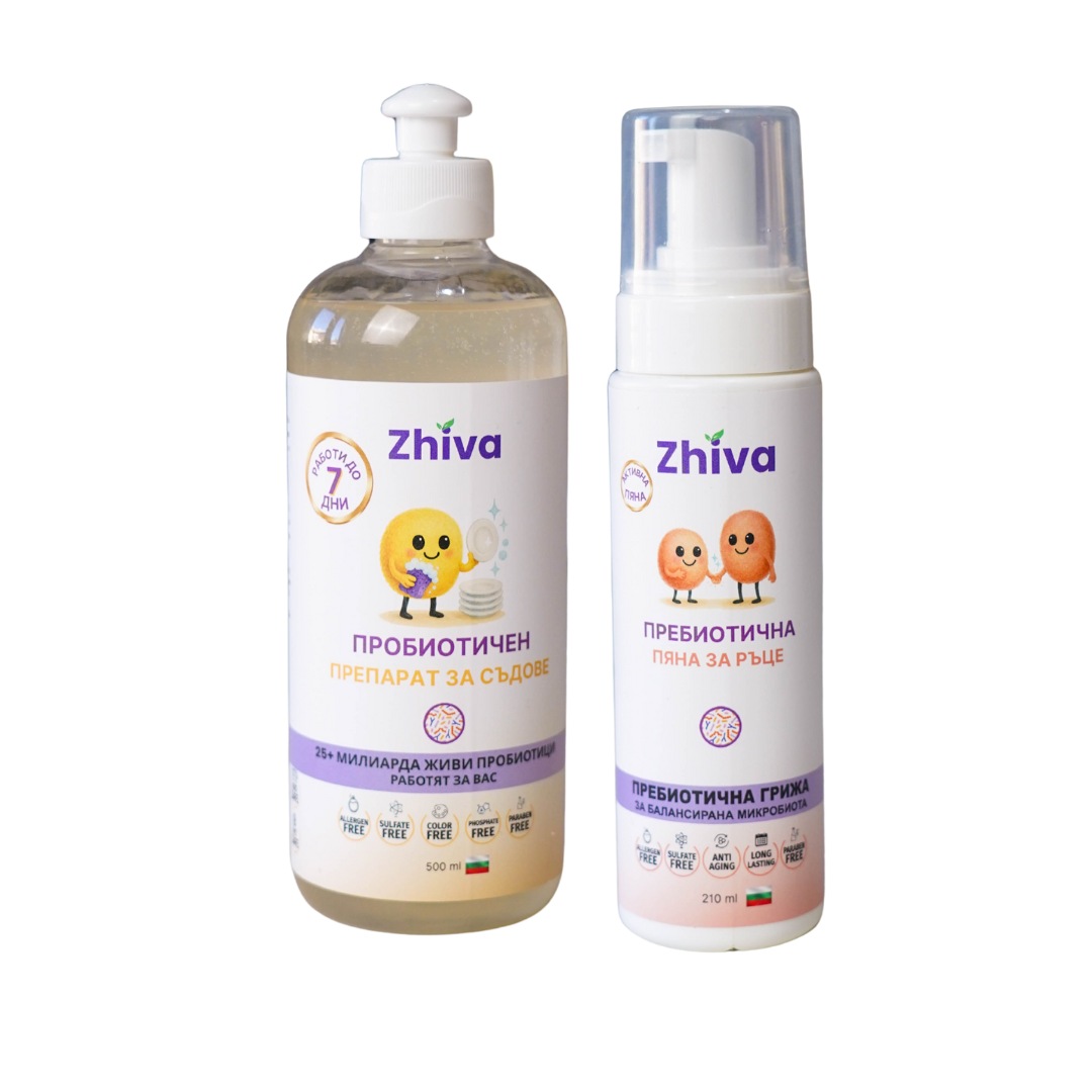 Единствената пробиотична формула за миене на съдове в България, която почиства в дълбочина и продължава да действа дори след измиването. Zhiva пробиотичен препарат за съдове разгражда мазнини и органични остатъци, неутрализира неприятните миризми и оставя съдове блестящо чисти, без агресивни химикали. Безопасен за ръце, деца и домашни любимци – защита и чистота от природата.